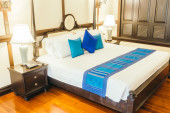 Zdjęcie "Hotel sypialnia" może być wykorzystywane do celów osobistych i komercyjnych zgodnie z warunkami zakupionej licencji Royalty-free. Obraz jest dostępny do pobrania w jakości wysokiej rozdzielczości do 5760x3840.
