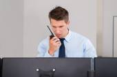 Zdjęcie "Biznesmen rozmawiający przez telefon w biurze" może być wykorzystywane do celów osobistych i komercyjnych zgodnie z warunkami zakupionej licencji Royalty-free. Obraz jest dostępny do pobrania w jakości wysokiej rozdzielczości do 5760x3840.