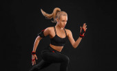 portret kobiety sexy fitness na czarnym tle