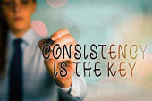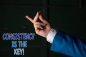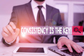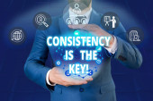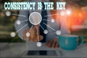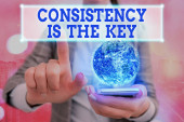 Zdjęcie "Koncepcyjnego pisania ręcznego pokazując spójność jest kluczem. Business Photo showobudowa przez Breaking złych nawyków i formowanie Good Ones kobiet człowieka nosić formalne garnitur pracy prezentacji inteligentnych urządzeń." może być wykorzystywane do celów osobistych i komercyjnych zgodnie z warunkami zakupionej licencji Royalty-free. Obraz jest dostępny do pobrania w jakości wysokiej rozdzielczości do 5760x3840.