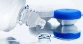 Soczewki kontaktowe odbite na szklanym stole z przodu obudowy soczewki
