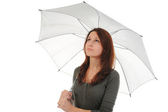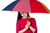 kobieta ubrana w czarny pod umbre czerwony i czarny