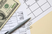 Zdjęcie "Formularz Irs W-9 Wniosek o numer identyfikacyjny podatnika i zaświadczenie puste leży z długopisem i banknotami o wartości wielu stu dolarów na stronie kalendarzowej" może być wykorzystywane do celów osobistych i komercyjnych zgodnie z warunkami zakupionej licencji Royalty-free. Obraz jest dostępny do pobrania w jakości wysokiej rozdzielczości do 5760x3840.