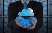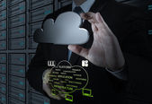 biznesmen ręcznie pracy z chmury obliczeniowej schemat
