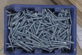 mały stos śrub i nakrętek do budowy i montażu mebli, konstruktorów lub naprawy narzędzi. izolowany na białym tle.