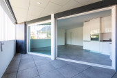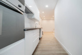 Nowoczesna biała kuchnia w pustym mieszkaniu z białymi ścianami