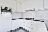 Zdjęcie "Nowoczesna biała kuchnia w pustym mieszkaniu z białymi ścianami" może być wykorzystywane do celów osobistych i komercyjnych zgodnie z warunkami zakupionej licencji Royalty-free. Obraz jest dostępny do pobrania w jakości wysokiej rozdzielczości do 5760x3840.