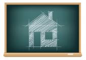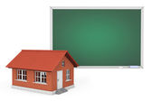 Tablica w kształcie domowej ikony, koncepcja samokształcenia, nauka w domu, renderowanie 3D