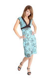 atrakcyjna blondynka w zielone lato sukienka