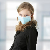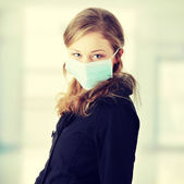 Model ubrany w maskę, aby zapobiec "Świńskiej grypy" w