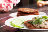 Zdjęcie "Domowe naleśniki ziemniaczane z gulaszem." może być wykorzystywane do celów osobistych i komercyjnych zgodnie z warunkami zakupionej licencji Royalty-free. Obraz jest dostępny do pobrania w jakości wysokiej rozdzielczości do 5760x3840.