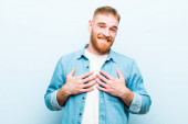 Zdjęcie "młody rudy biznesmen wygląda szczęśliwy i uśmiechnięty z ręką na podbródku, zastanawiając się lub zadając pytanie, porównując opcje na pomarańczowym tle" może być wykorzystywane do celów osobistych i komercyjnych zgodnie z warunkami zakupionej licencji Royalty-free. Obraz jest dostępny do pobrania w jakości wysokiej rozdzielczości do 5760x3840.