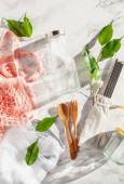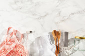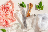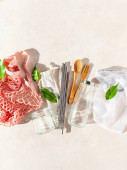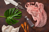 zero odpadów ekologiczna koncepcja. Worek bawełniany wielokrotnego użytku, nierdzewny