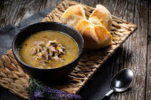 Zupa jęczmienna z warzywami i kurczakiem.