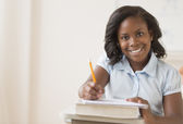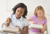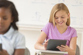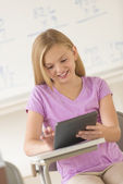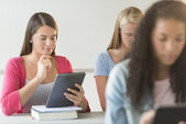 nastoletnią student za pomocą cyfrowego tabletu na biurko
