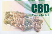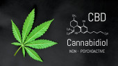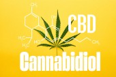 widok z góry zielony liść marihuany na zielonym tle z białym cbd ilustracji