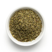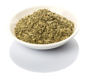 Suszone posiekane zioła prowansalskie w białej ceramicznej misce izolowane na