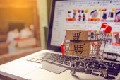 Zakupy online koncepcja - Paczka lub kartony papierowe z agrafką