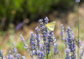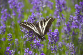 Blisko wschodni tygrys jaskółka Motyl pijący nektar z purpurowych kwiatów.