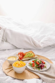 Zdjęcie "Taca ze smacznymi kanapkami i sokiem na łóżku" może być wykorzystywane do celów osobistych i komercyjnych zgodnie z warunkami zakupionej licencji Royalty-free. Obraz jest dostępny do pobrania w jakości wysokiej rozdzielczości do 5760x3840.