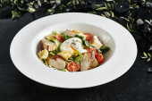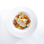 Zdjęcie "Smaczne Cezar z łososia góry widok" może być wykorzystywane do celów osobistych i komercyjnych zgodnie z warunkami zakupionej licencji Royalty-free. Obraz jest dostępny do pobrania w jakości wysokiej rozdzielczości do 5760x3840.