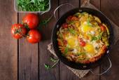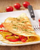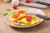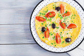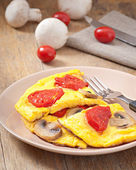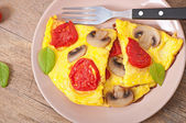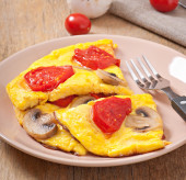 pyszny omlet z pomidorami i grzybami na śniadanie