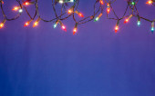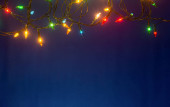 Boże Narodzenie światła na niebieskim tle z miejsca kopii