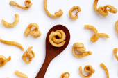 Taralli - tradycyjna włoska przekąska podobna do suszenia lub bajgli, typowa dla kuchni sycylijskiej i kalabryjskiej. Bagietka na białym tle, odizolować wzór. Przestrzeń kopiowania.