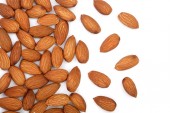 górny widok orzechów migdałowych rozrzuconych na białym