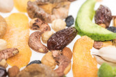 różne tureckie suszone owoce i orzechy izolowane na białym