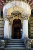 Szczegóły willi Medyceusz na ganku wejściowym Poggio a Caiano, Toskania, Włochy