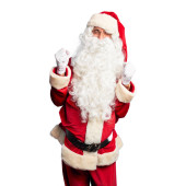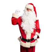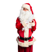 Zdjęcie "Przystojny mężczyzna w średnim wieku w kostiumie Świętego Mikołaja i brodzie stojący Uśmiechnięty, wskazujący na głowę jednym palcem, świetnym pomysłem lub myślą, dobrą pamięcią" może być wykorzystywane do celów osobistych i komercyjnych zgodnie z warunkami zakupionej licencji Royalty-free. Obraz jest dostępny do pobrania w jakości wysokiej rozdzielczości do 5760x3840.