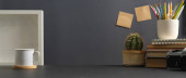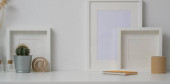 Zdjęcie "Nowoczesna przestrzeń robocza z ramą mocującą i ceramicznym wazonem na białym stole i szarym tle ściany z przestrzenią do kopiowania " może być wykorzystywane do celów osobistych i komercyjnych zgodnie z warunkami zakupionej licencji Royalty-free. Obraz jest dostępny do pobrania w jakości wysokiej rozdzielczości do 5760x3840.