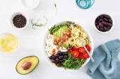 Sałatka pomidorowa z awokado w stylu greckim z serem feta, oliwki, zdaniem