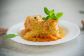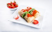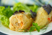 Nadziewane papryki z mięsem i warzywami w talerzu