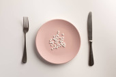 Zdjęcie "Kapsułki medyczne na talerzu. Płaski lay." może być wykorzystywane do celów osobistych i komercyjnych zgodnie z warunkami zakupionej licencji Royalty-free. Obraz jest dostępny do pobrania w jakości wysokiej rozdzielczości do 5760x3840.