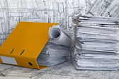 duże sterty rysunków projektu i projektu