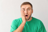 Zszokowany młodego człowieka na jasnym tle