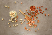 Miski ze smacznymi orzechami pistacjowymi na tle koloru