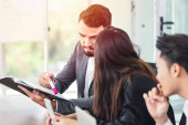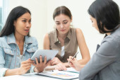 Zdjęcie "Biznesmeni Inteligentne Kobiety Spotkanie zespołu ds. pracy w sali konferencyjnej z papierami firmowymi w biurze." może być wykorzystywane do celów osobistych i komercyjnych zgodnie z warunkami zakupionej licencji Royalty-free. Obraz jest dostępny do pobrania w jakości wysokiej rozdzielczości do 5760x3840.