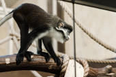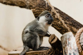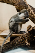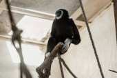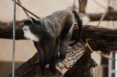 selektywne skupienie słodkie czarno-białe małpy siedzi na drzewie
