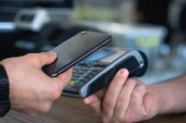 Przycięte zdjęcie baristki dokonującej płatności przez kredyt klienta
