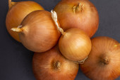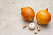 Zdjęcie "Olbrzymie cebulowe cebulki na kamiennym tle. Tło gotowania żywności, zbliżenie." może być wykorzystywane do celów osobistych i komercyjnych zgodnie z warunkami zakupionej licencji Royalty-free. Obraz jest dostępny do pobrania w jakości wysokiej rozdzielczości do 5760x3840.