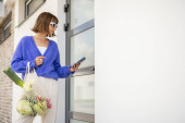 Zdjęcie "Kurierka dostarczająca świeże jedzenie z plecakiem" może być wykorzystywane do celów osobistych i komercyjnych zgodnie z warunkami zakupionej licencji Royalty-free. Obraz jest dostępny do pobrania w jakości wysokiej rozdzielczości do 5760x3840.