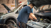 Zdjęcie "Mechanik wyładowuje olej silnikowy ze zbiornika silnika pod samochodem" może być wykorzystywane do celów osobistych i komercyjnych zgodnie z warunkami zakupionej licencji Royalty-free. Obraz jest dostępny do pobrania w jakości wysokiej rozdzielczości do 5760x3840.