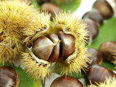 kasztany wchodzące i wychodzące z jeża na białym tle