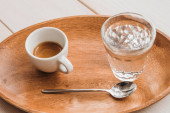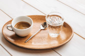 Kawa z tonikiem espresso na drewnianym stole z łyżką