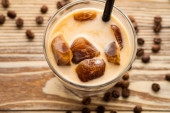 Kawa z tonikiem espresso na drewnianym stole z łyżką