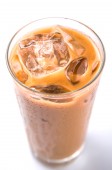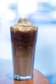 Lodowa kawa latte na drewnianym stole