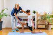 Zdjęcie "Fizjoterapeuta lub trener rozciągający starszą kobietę na macie do ćwiczeń w siłowni." może być wykorzystywane do celów osobistych i komercyjnych zgodnie z warunkami zakupionej licencji Royalty-free. Obraz jest dostępny do pobrania w jakości wysokiej rozdzielczości do 5760x3840.